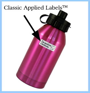 Shoe Shields™: Apply the name label to the inside, flat heel area of the shoe and press firmly. Center the Shoe Shields™ label over the name label and press firmly.